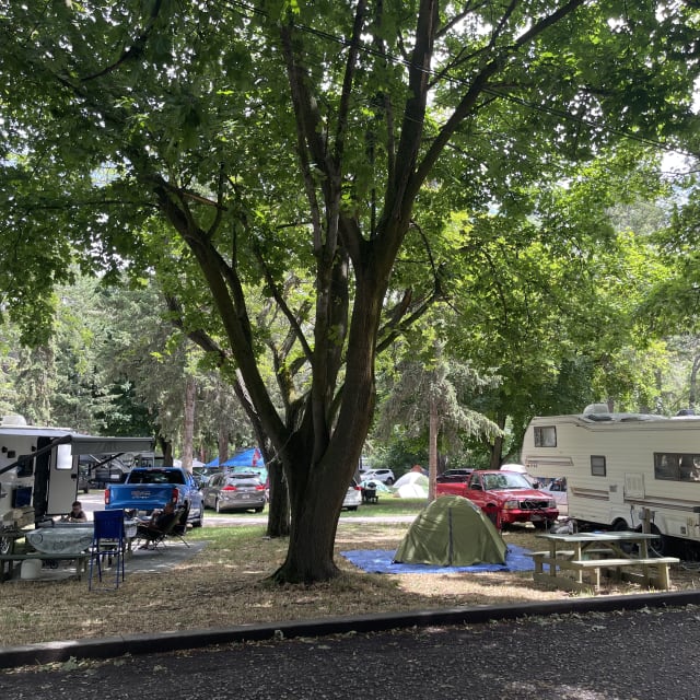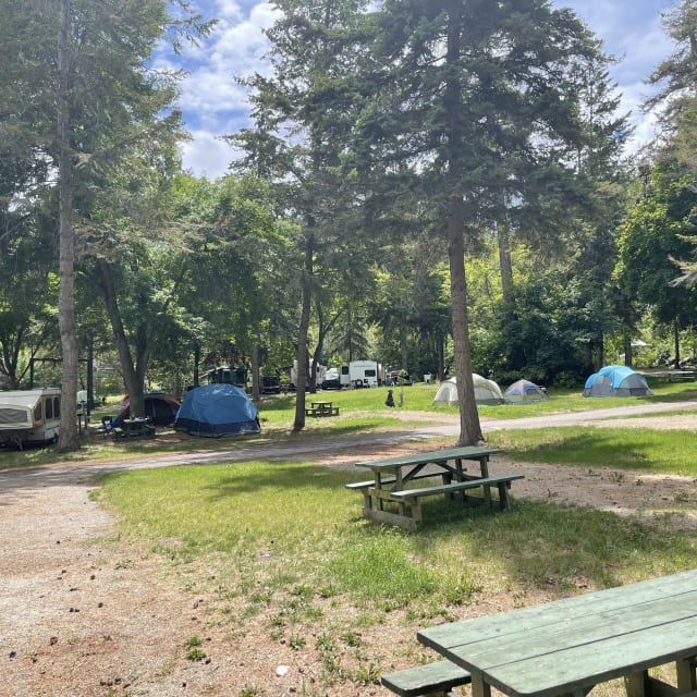 Peach Orchard Campground in Summerland offers a peaceful retreat within walking distance of Okanagan Lake. The campsite features well-maintained sites for tents and RVs, modern amenities such as modern washroom facilities, fire pits, picnic tables, a play area for children, and close proximity to a sandy beach and local attractions, making it a convenient and relaxing spot for families.